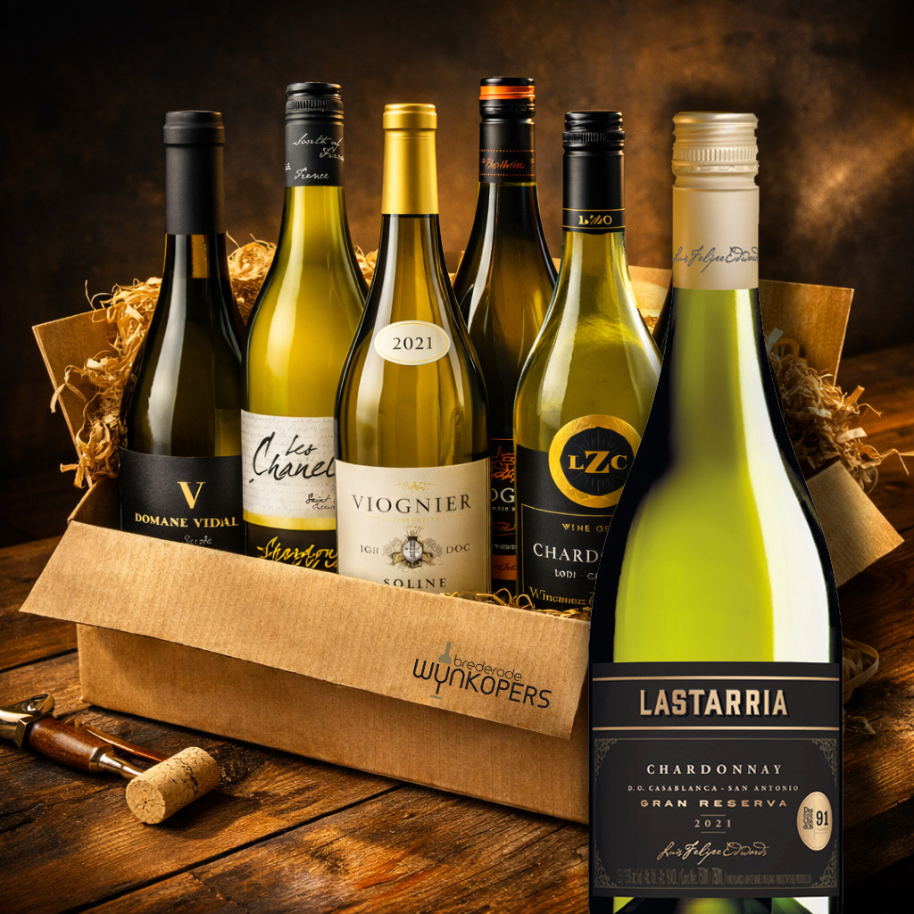 Wij hebben een zorgvuldig samengestelde witte wijnbox met vijf expressieve wijnen uit Californië en Zuid-Frankrijk. En daar voegen we tijdelijk gratis aan toe: de Lastarria Gran Reserva Chardonnay.